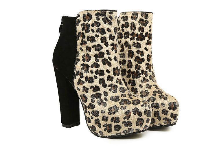 Latest Sexy Zipper Leopard Patchwork High Heels Boots