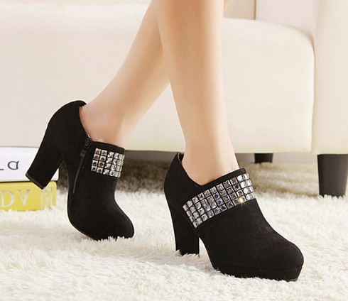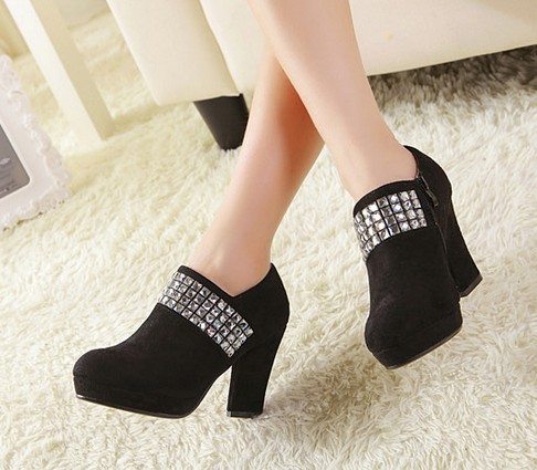 Trend Style Fall Winter Diamond Chunky Heel Platform Ankle Boots
