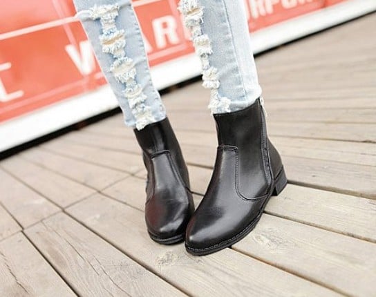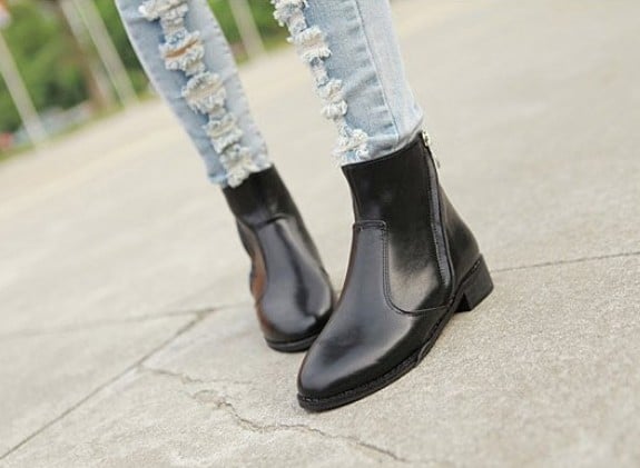 Retro Style Pure Color Side Zipper Chunky Heel Ankle Boots