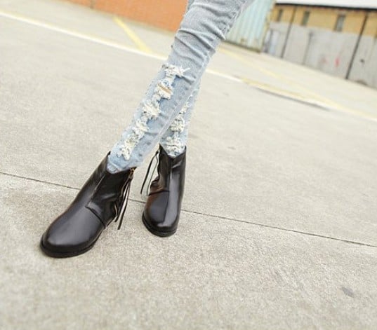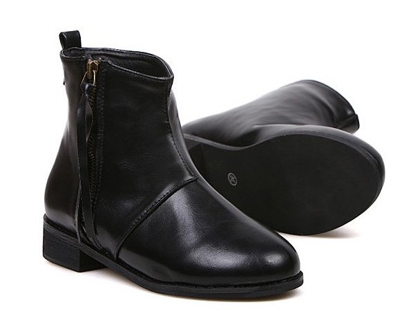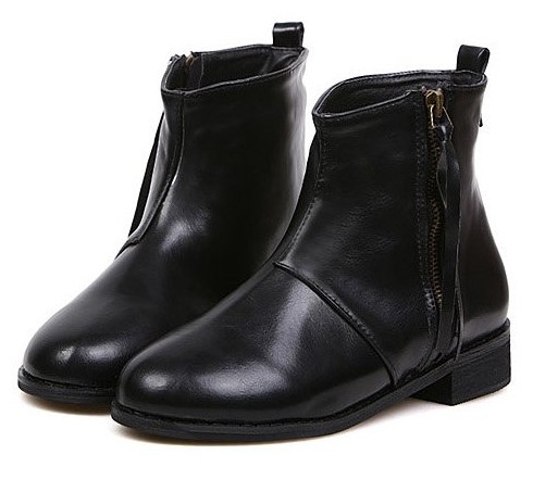 Retro Style Side Zipper Chunky Heel Ankle Boots In Black