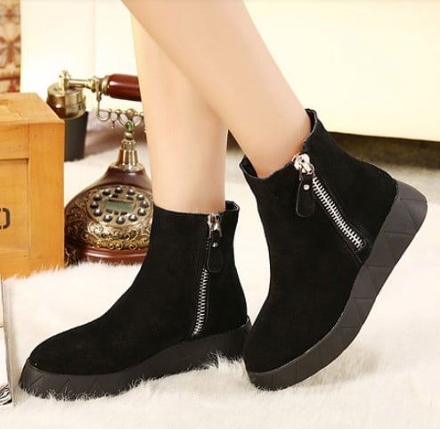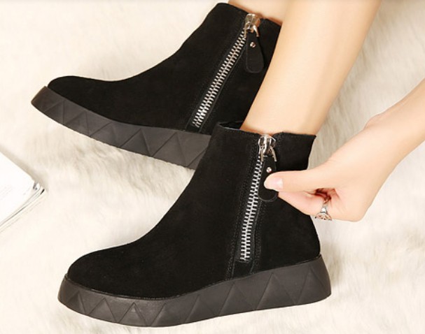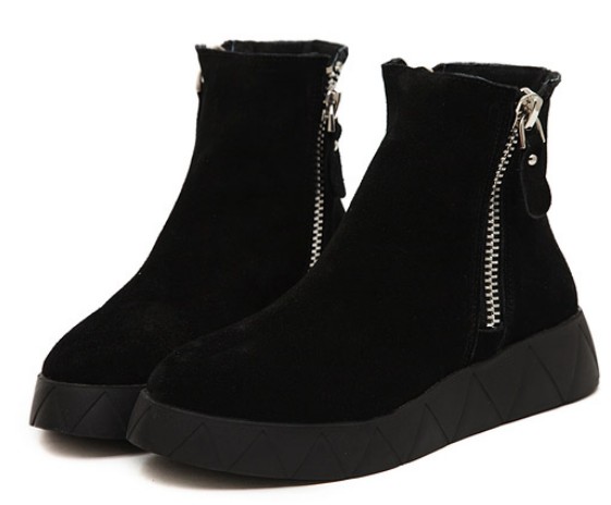 Trendy Style Pure Color Round Toe Side Zipper Ankle Boots