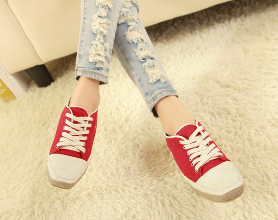Korean Stylish Bandage Canvas Increase square Toe Shoes