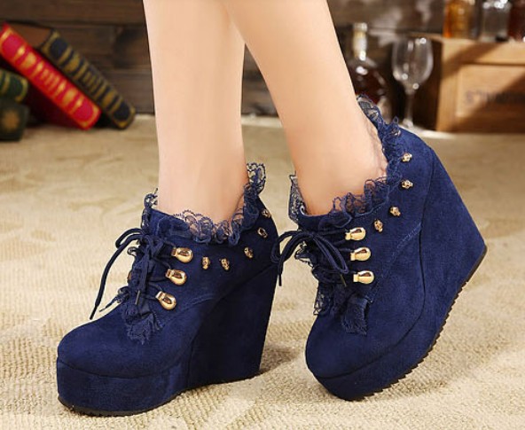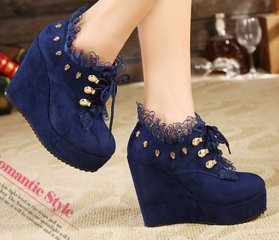 Sexy Lady Bandage Lace Ornament Rivet Decoration Wedge Heel Platform Short Boots