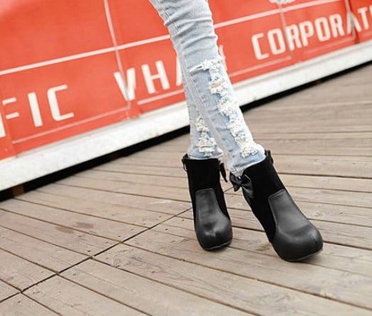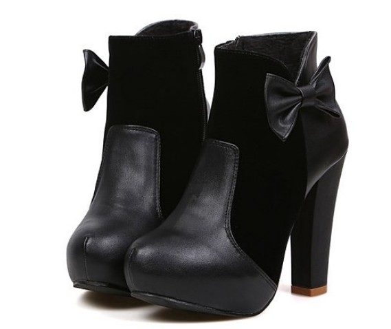 Fashion Stylish Bandage Side Zipper Bowknot Chunky Heel Ankle Boots