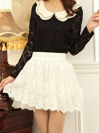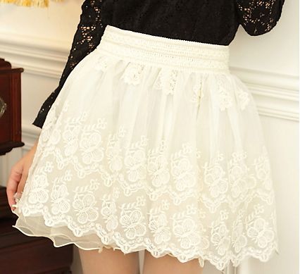 New Arrival Sweet Style Pure Color Lace Embossing Organza Skirt