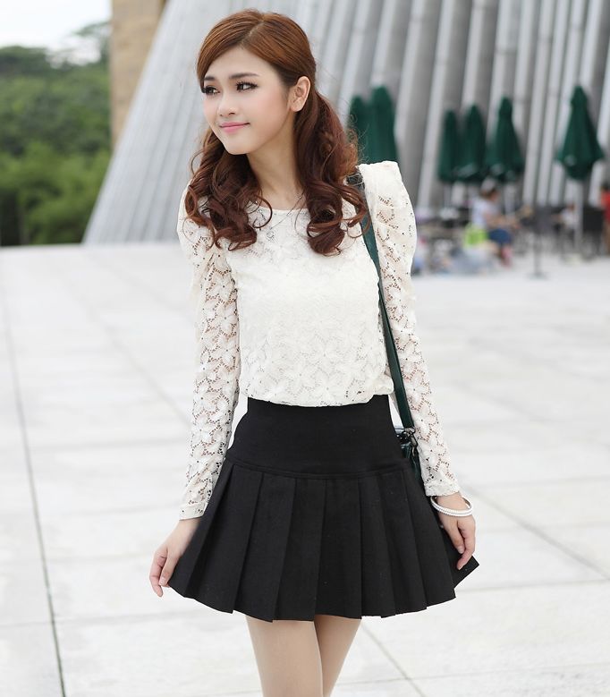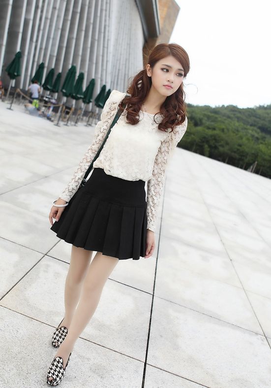 Preppy Style High Waisted Solid Color Pleated Mini Skirts