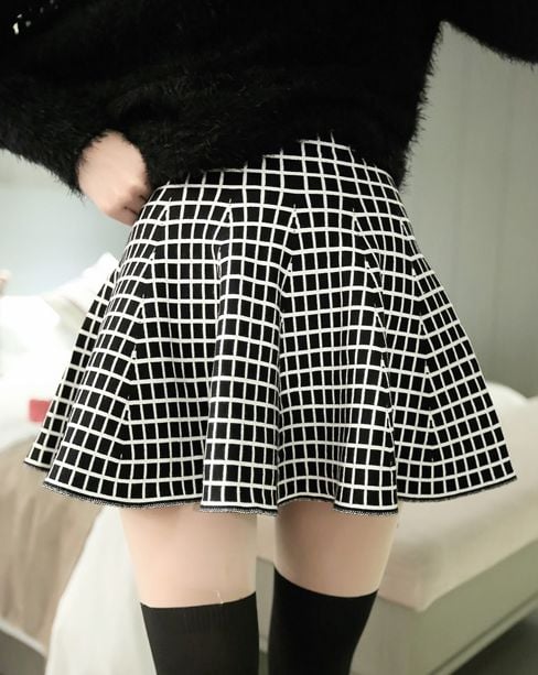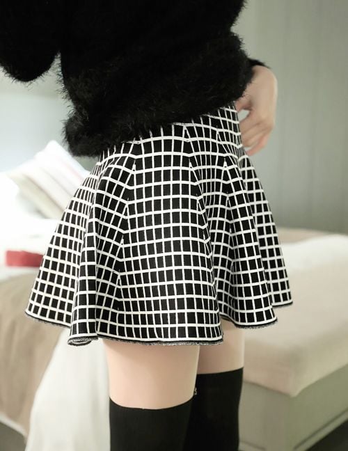 Korean Style Plaid High Waisted Ruffles Hem Mini Skirts